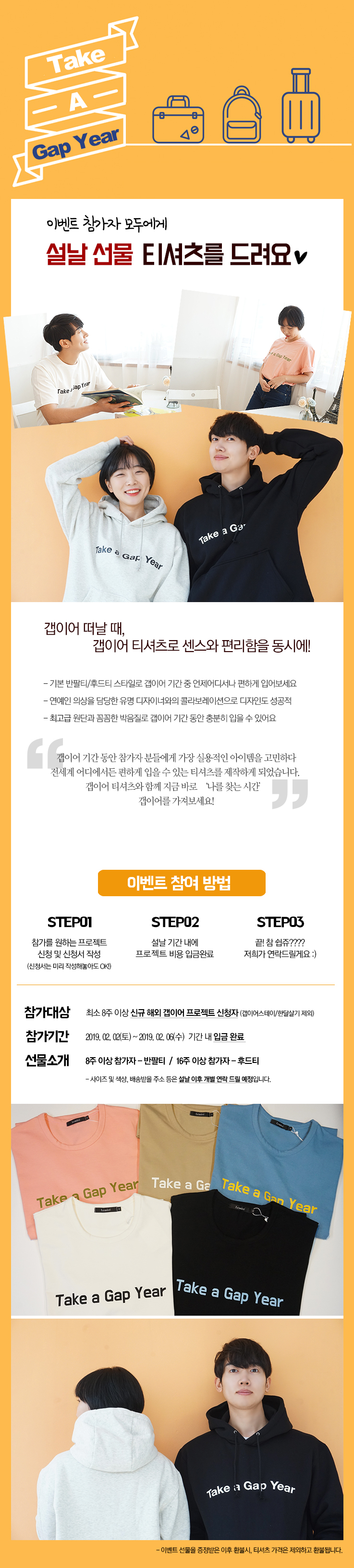 이벤트 - 갭이어 후드티/ 반팔티 무료 증정! 설날 선물 받아가세요♥