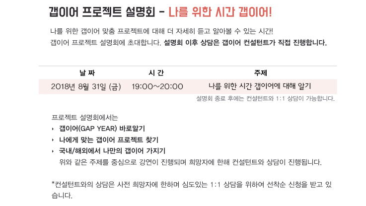 나를 위한 시간 갭이어! - 8월 31일 갭이어 프로젝트 설명회 (선착순 마감)