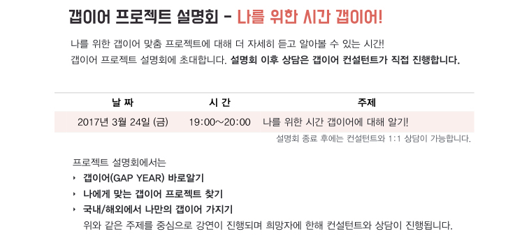 나를 위한 시간 갭이어! - 3월 24일 갭이어 프로젝트 설명회 (선착순 마감)