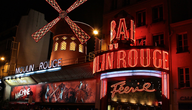 파리 몽마르트 번화가에 위치한 거대한 댄스홀입니다. 프랑스어로‘붉은 풍차’라는 뜻을 가지고 있고 실제로 건물에 거대한 풍차가 네온 사인으로 걸려있습니다. 19세기에는 잘생기고 권력을 가진 남자들이 몰려드는 사교계의 핫 플레이스였습니다.