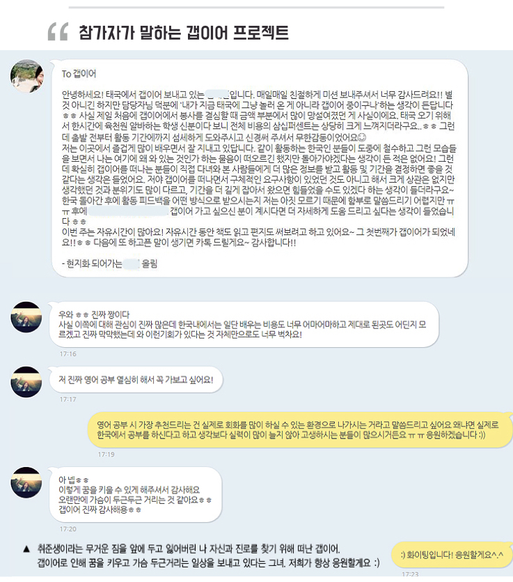 프로젝트에 대한 기타 문의사항은 운영팀 이메일 (koreagapyear@gmail.com)혹은