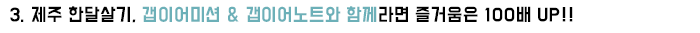 유행처럼 번진 제주도 한달살기! 그 중에서도 갭이어와 함께 제주 한달살기를 해야 하는 가장 큰 이유는 기획자가 직접 제주도에 있는 많은 숙박업소 중 까다로운 조건들을 거쳐 선발해서 안전성과 신뢰성이 보장되어있다는 점! 또한 참가자 개개인에 맞춘 갭이어 미션으로 제주도에서의 지루함은 날려버리고, 갭이어 노트로 자신을 돌아보고 더 성장시킬 수 있는 시간을 만들어보세요!