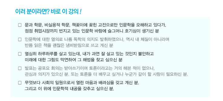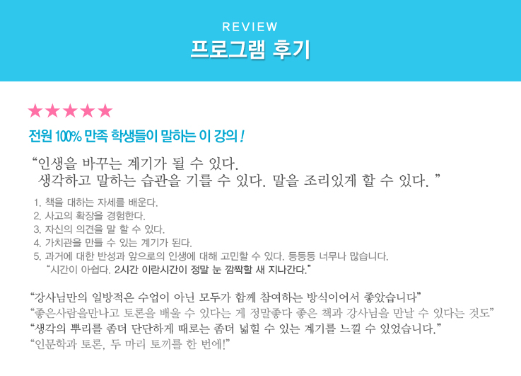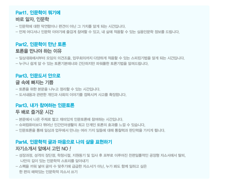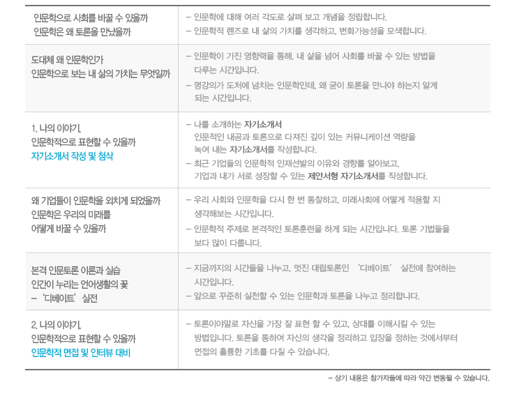 3. 인문학적 지식만을 전달하거나 토론기법만 길러주는 강의가 아닙니다.