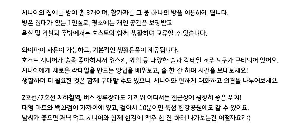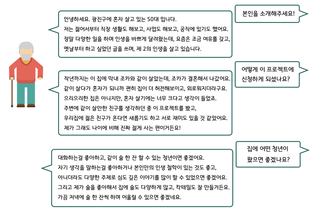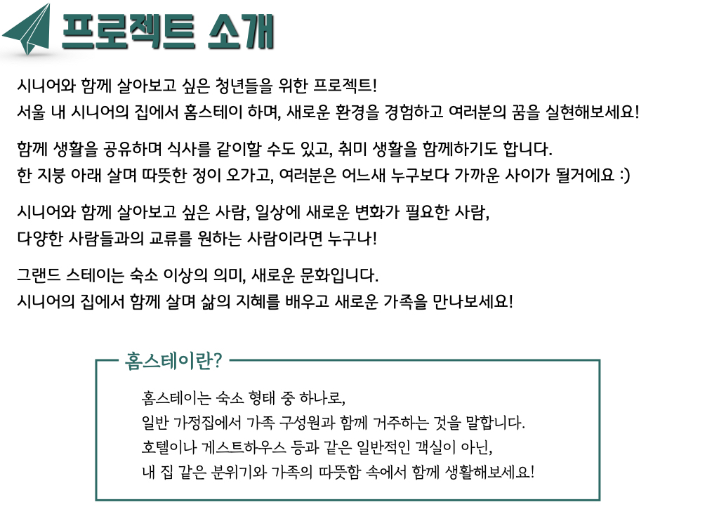 시니어와 함께 살아보고 싶은 청년들을 위한 프로젝트! 서울 내 시니어의 집에서 홈스테이 하며, 새로운 환경을 경험하고 여러분의 꿈을 실현해보세요!