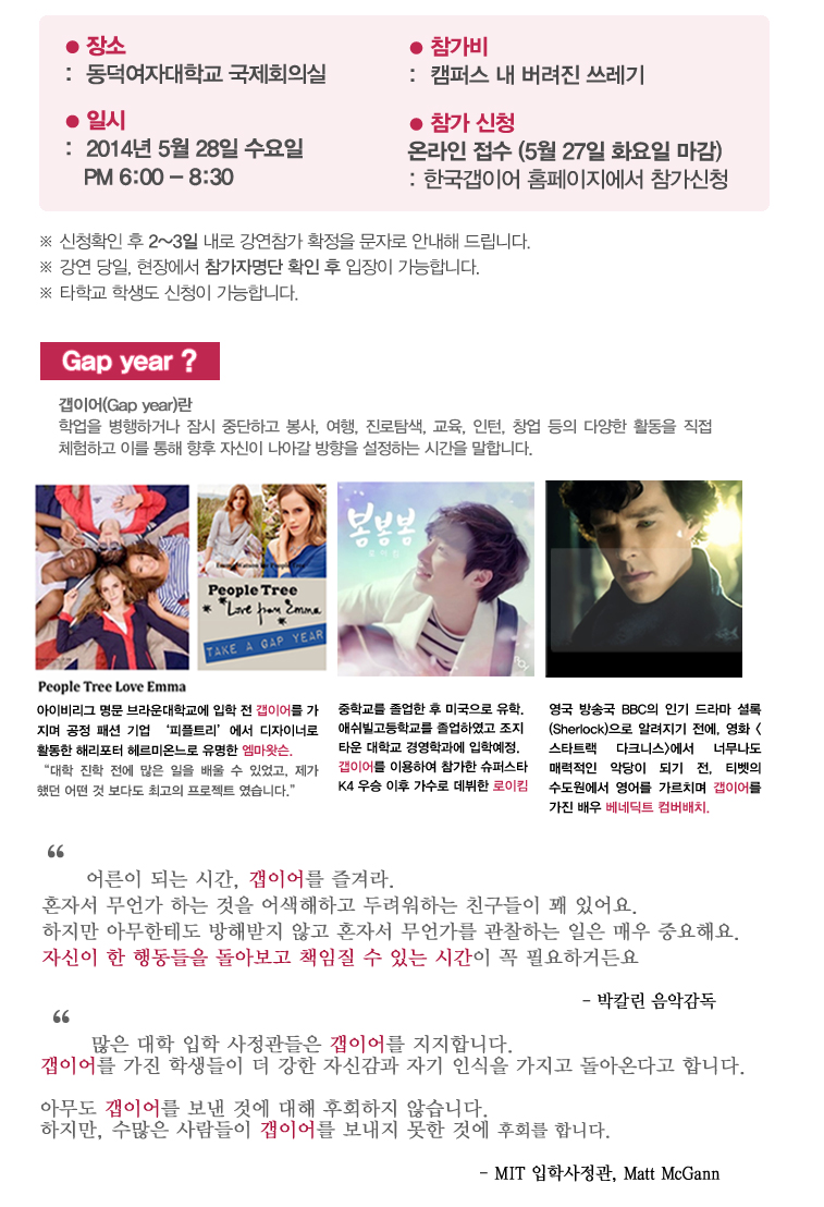 2014 동덕여자대학교 갭이어 토크콘서트(타교생 참가가능)