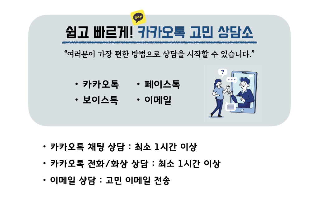 여러분이 가장 편한 방법으로 고민을 털어놓아보세요!