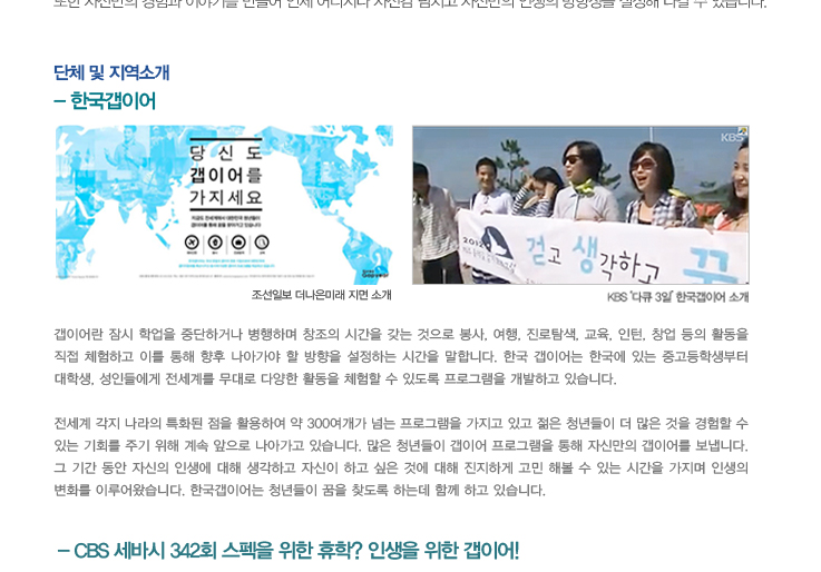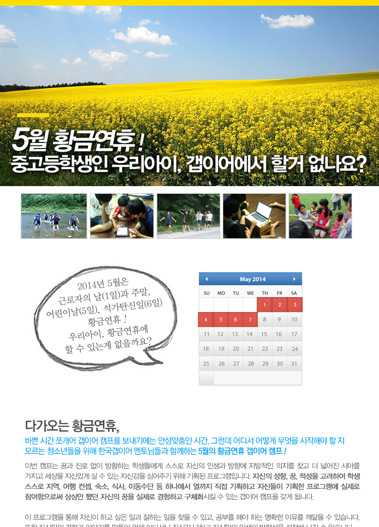 중고등학생인 우리아이, 설날/5월 황금연휴에 갭이어에서 할 거 없나요?