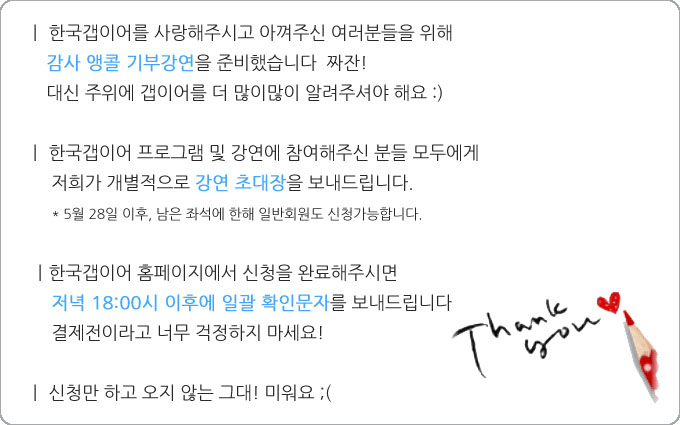 프로젝트에 대한 기타 문의사항은 운영팀 이메일 (koreagapyear@gmail.com)혹은
