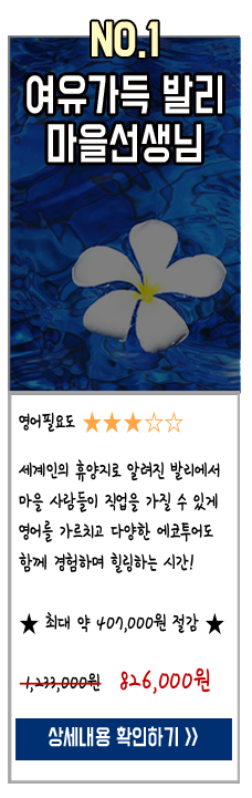 프로젝트에 참가하고 싶지만 자신의 영어실력이 걱정된다면 "스트레스 받지 않고, 즐겁게 즐기면서 영어공부 하면 끝!(클릭)" 프로젝트를 추천해드려요. 1:1 수업이 특화된 필리핀에서 전 세계에서 온 친구들과 자연스럽게 영어를 사용하면서 재미있게 영어를 공부하고, 영어에 대한 자신감을 키워보세요!